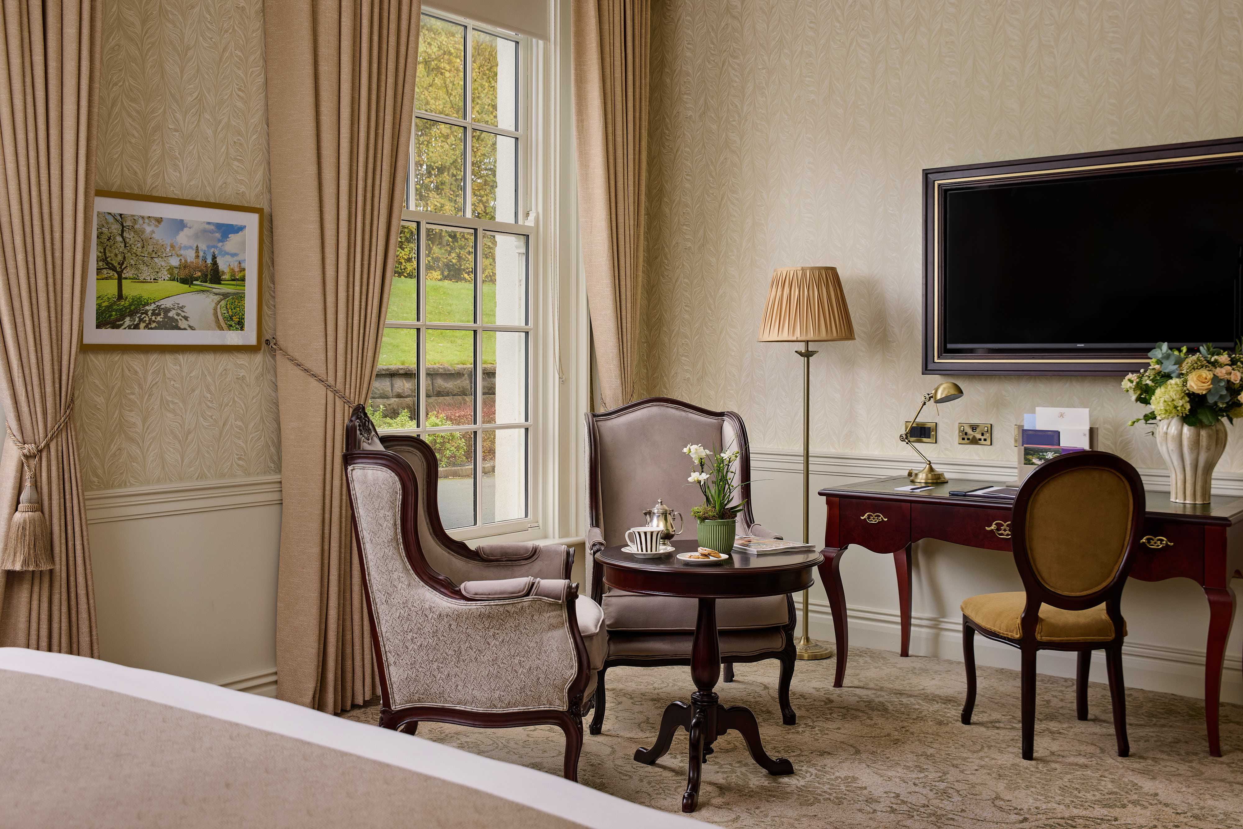 Our Deluxe River View Rooms offer captivating comfort and style. Guests can enjoy stunning views of the legendary River Liffey as it winds through the resort’s grounds, creating a tranquil and picturesque setting. These rooms are generously appointed with large sash windows offering maximum daylight and stunning views. Options for interconnecting rooms or a luxury sofa bed available on request.